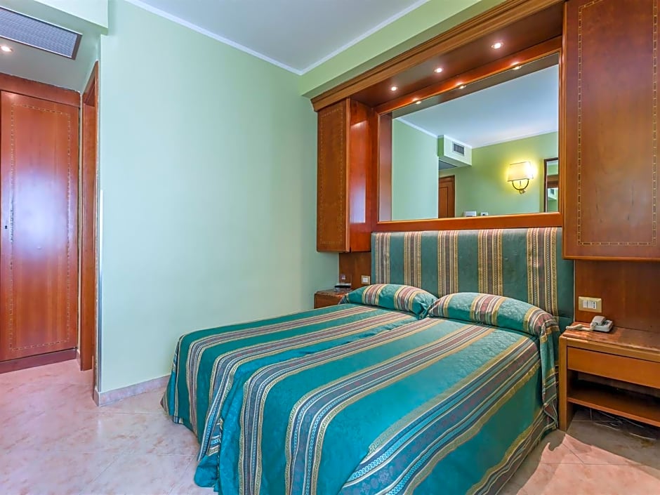 Standard is 172 square feet and includes a queen-size bed 150-154 width plus safe.